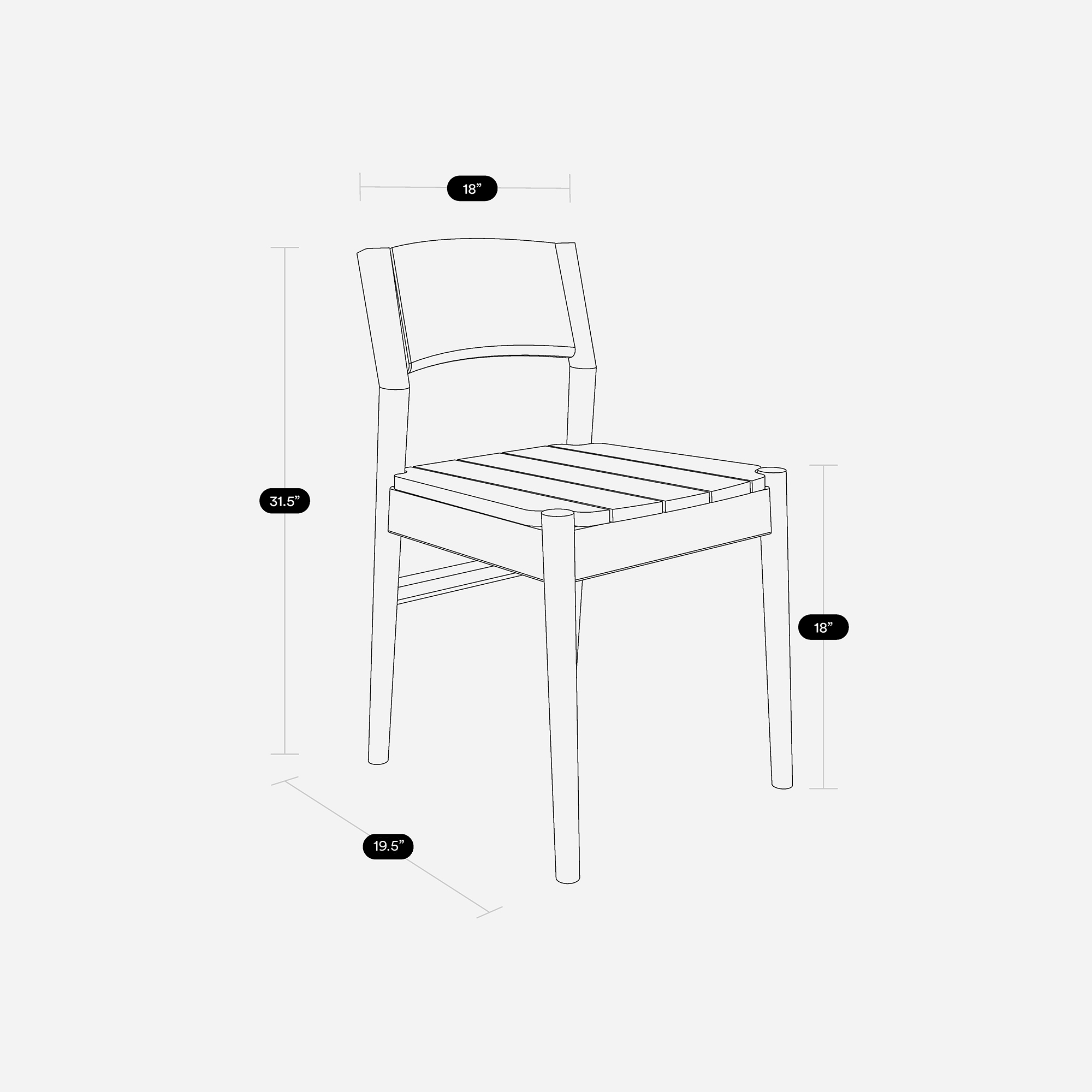 W: 18" D: 19.5" H: 31.5"