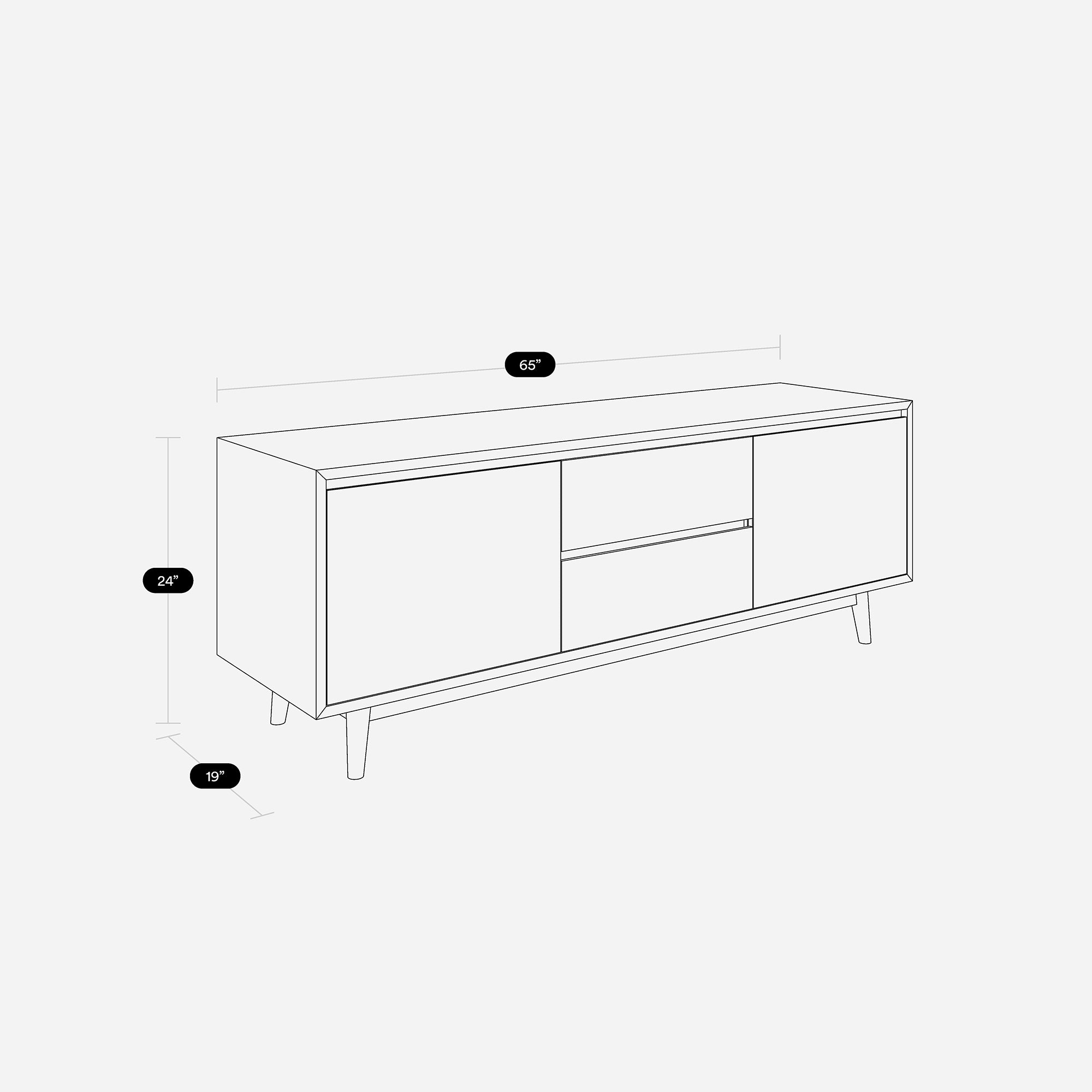 W:65" D: 19" H: 24"