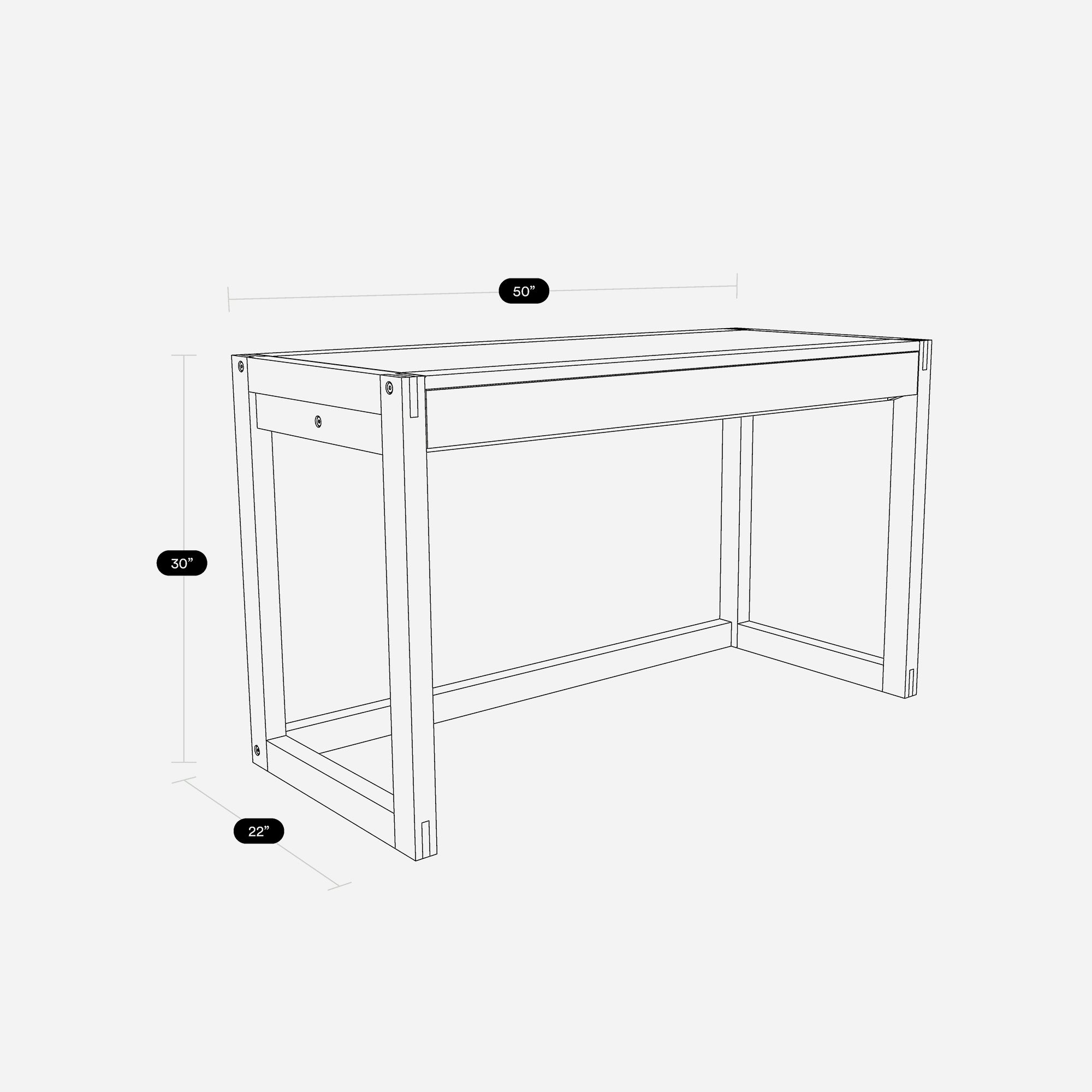 W: 50” D: 22” H: 30”